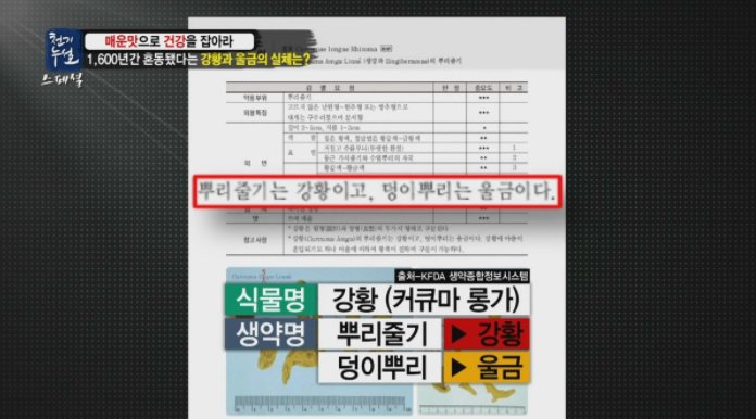 일단 사전적 정의를 살펴보면 울금은 강황과 같은 말이며, 강황은 생강과의 여러해살이풀로 덩이뿌리를 말린 약재라고 되어 있습니다. 사전적 정의를 보면 울금과 강황의 차이 없는 것 처럼 보이는데요. 식약처에서 울금과 강황에 대한 애매한 점을 정리해 주었습니다.