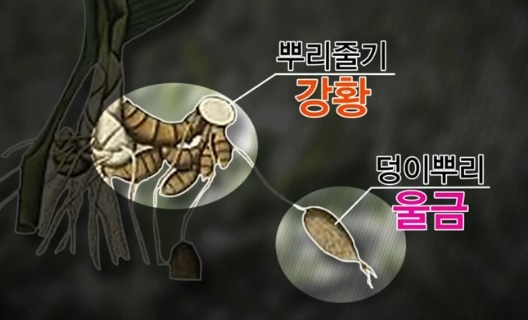 식약처에서는 강황의 뿌리와 줄기를 강황, 그 안에 덩이뿌리가 있는 부분을 울금이라고 설명하고 있습니다. 강황은 생강과 생긴게 비슷한데 학명으로 커큐마 롱가라고 합니다. 커큐마 롱가가 국내로 들어오면서 붙여진 이름이 강황이라고 해요.