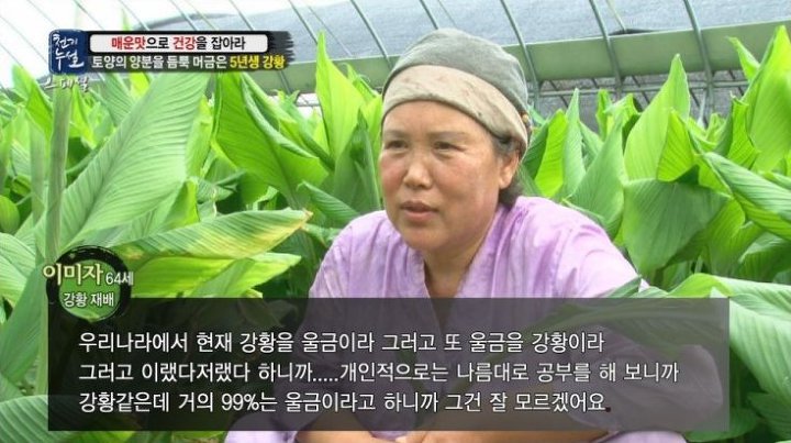 울금과 비슷한 강황은 재배농가에서도 헷갈려하는 경우가 많다고 합니다. 시장에 가보면 울금과 강황이 같은 것이라며 국내산은 울금, 수입산은 강황이라고 말하는 분들도 계신데요. 일반인 뿐만 아니라 전문가조차고 구별하기 힘들기 때문에 많이들 헷갈려 하십니다.